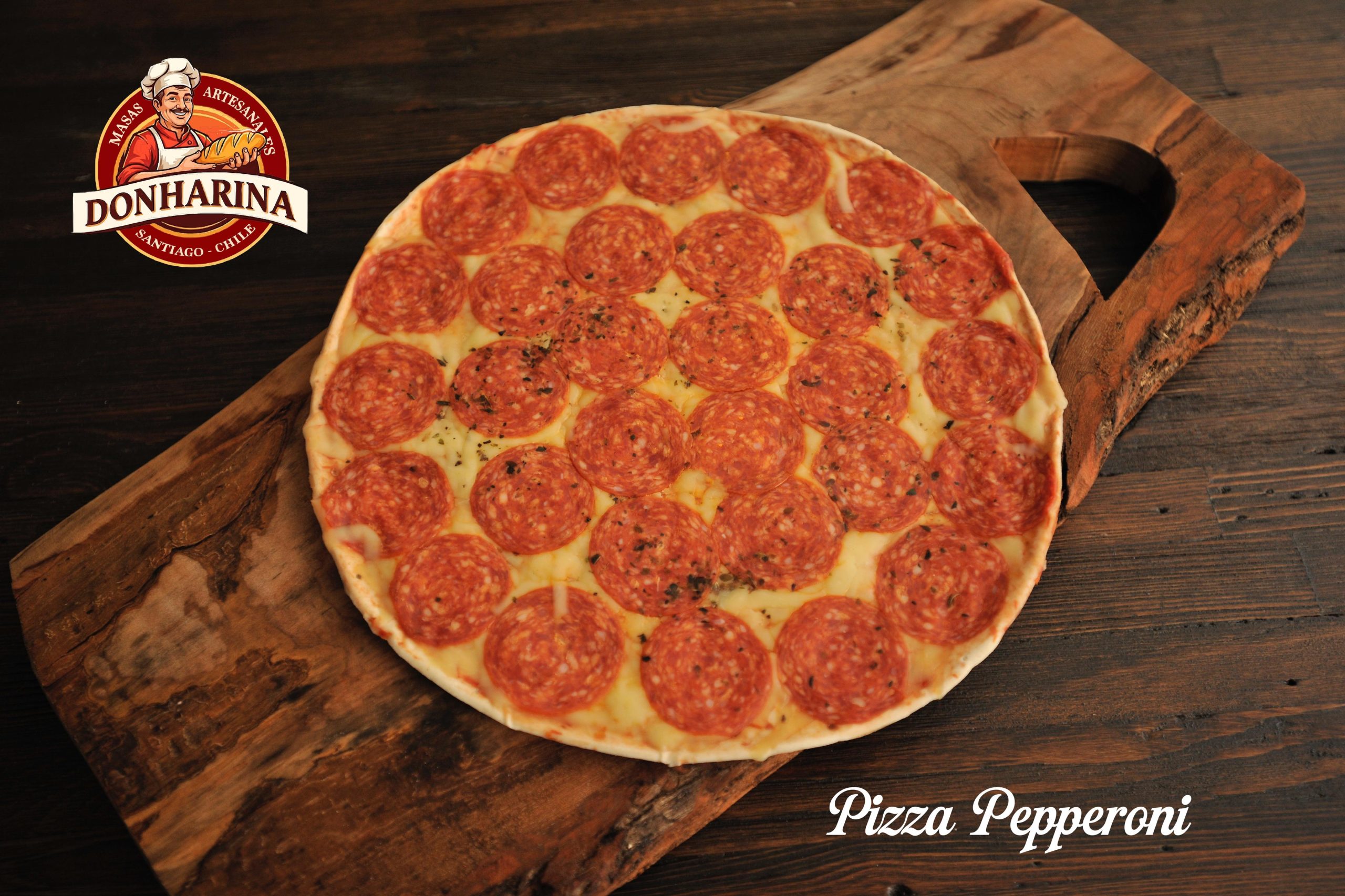 Un clásico reinventado: fina masa dorada al horno, salsa de tomates maduros cuidadosamente seleccionados, mozzarella cremosa y finas láminas de pepperoni que liberan notas ahumadas y ligeramente picantes al fundirse en cada bocado.